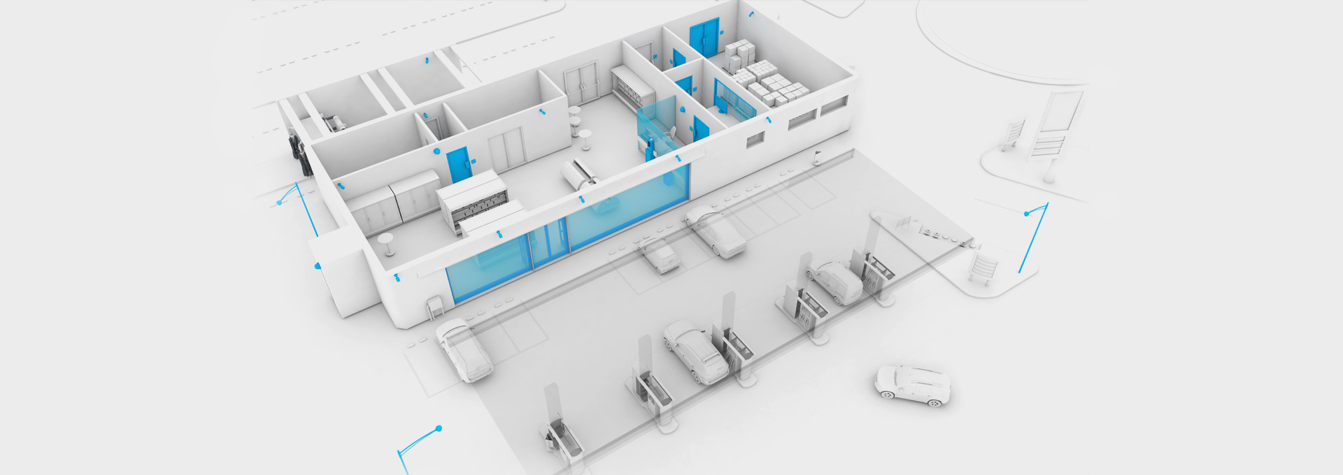 La demande de départ : faire ressortir l’ensemble des produits de sécurité fabriqués par la société Gunnebo pour des lieux publics, produits qui par essence se doivent être peu visibles.